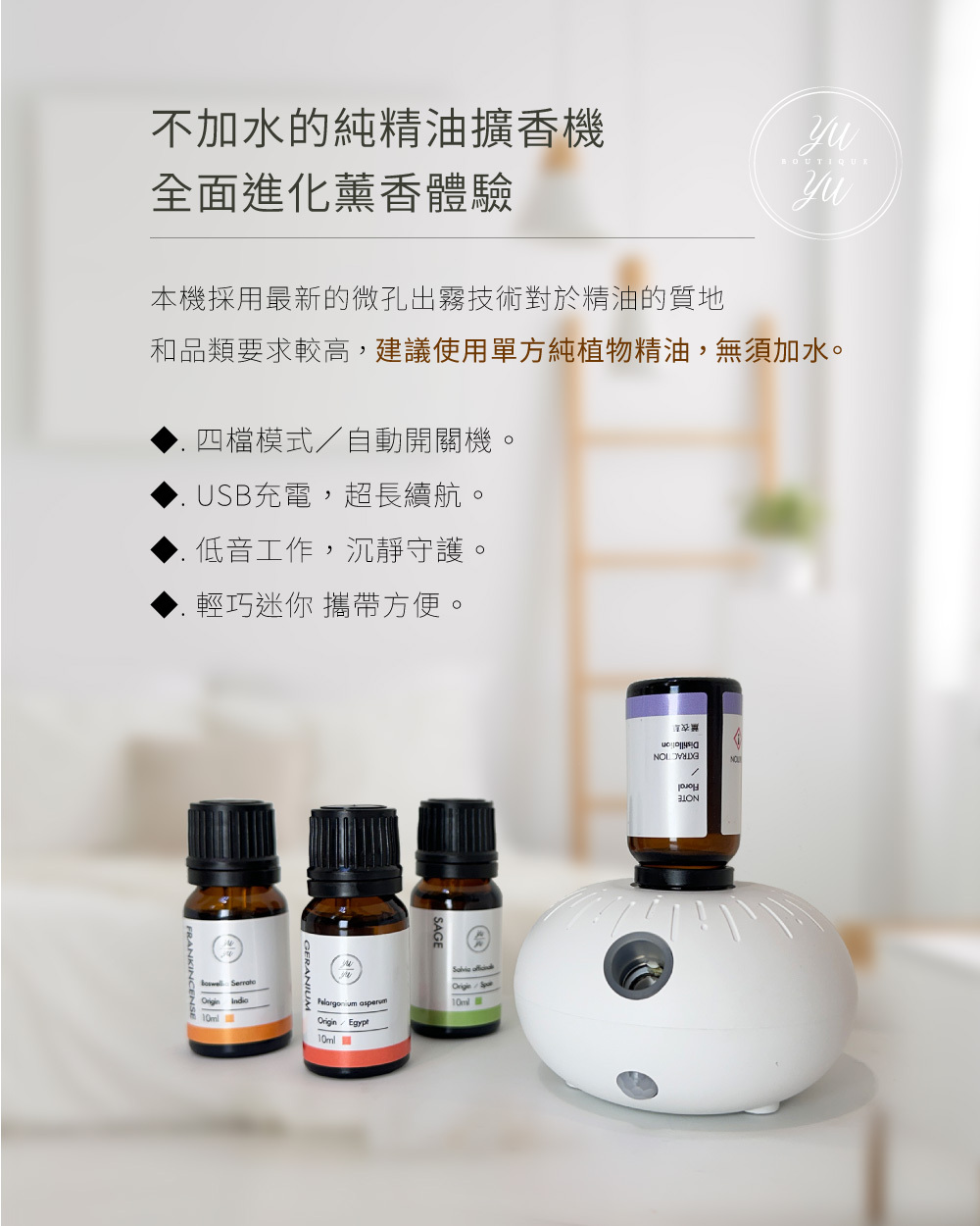 和品類要求較高,建議使用單方純植物精油,無須加水。