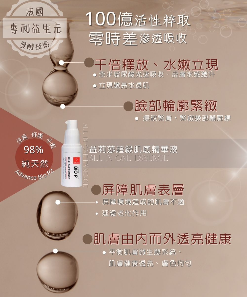 專利Advance BIO P2科技,建立肌膚微生態平衡,提升屏障防護,舒緩不適、均勻膚色。