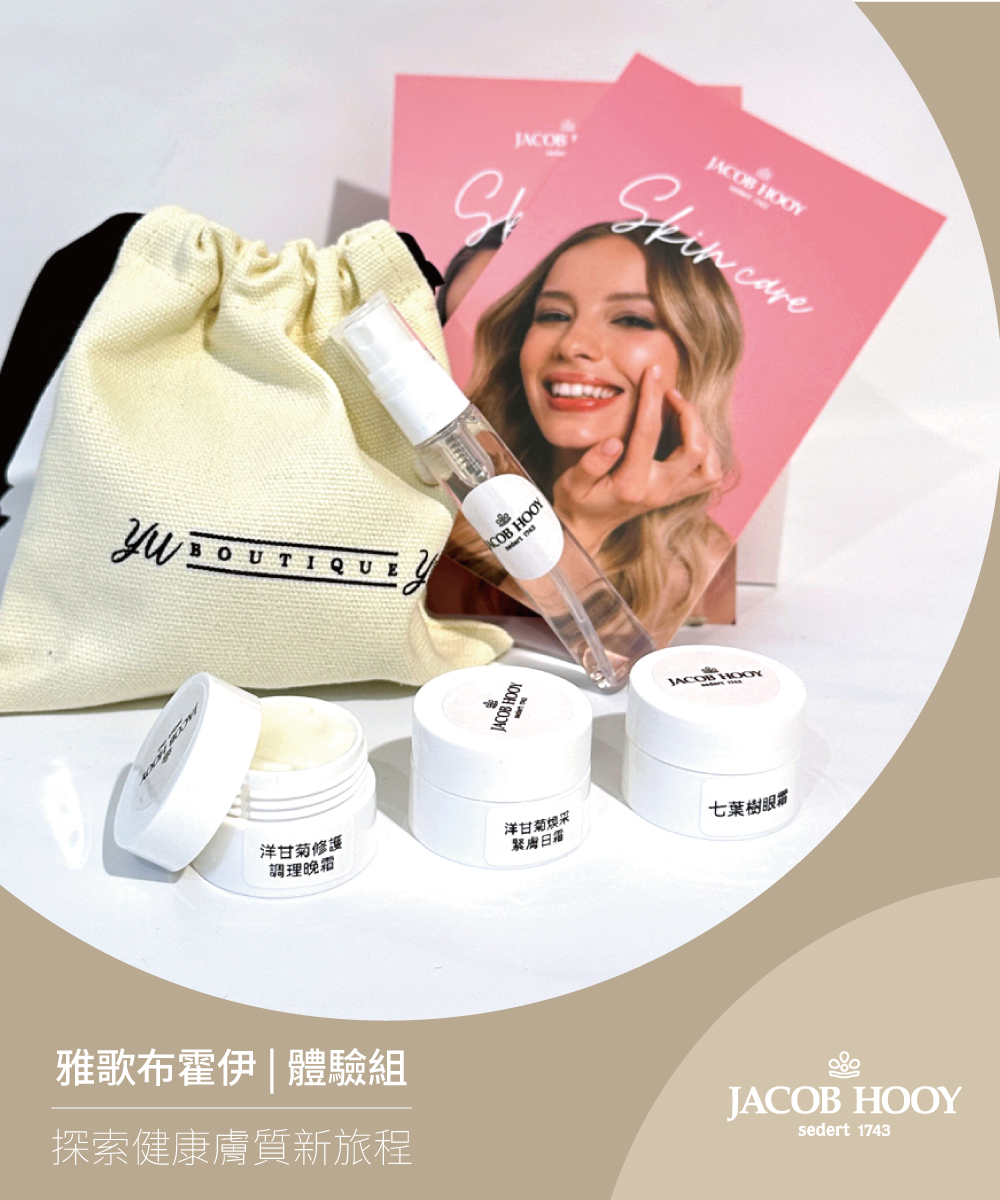 由內而外,守護肌膚的健康與彈性——Jacob Hooy 精選三款明星保養品,打造全天候舒緩修護的理想節奏: