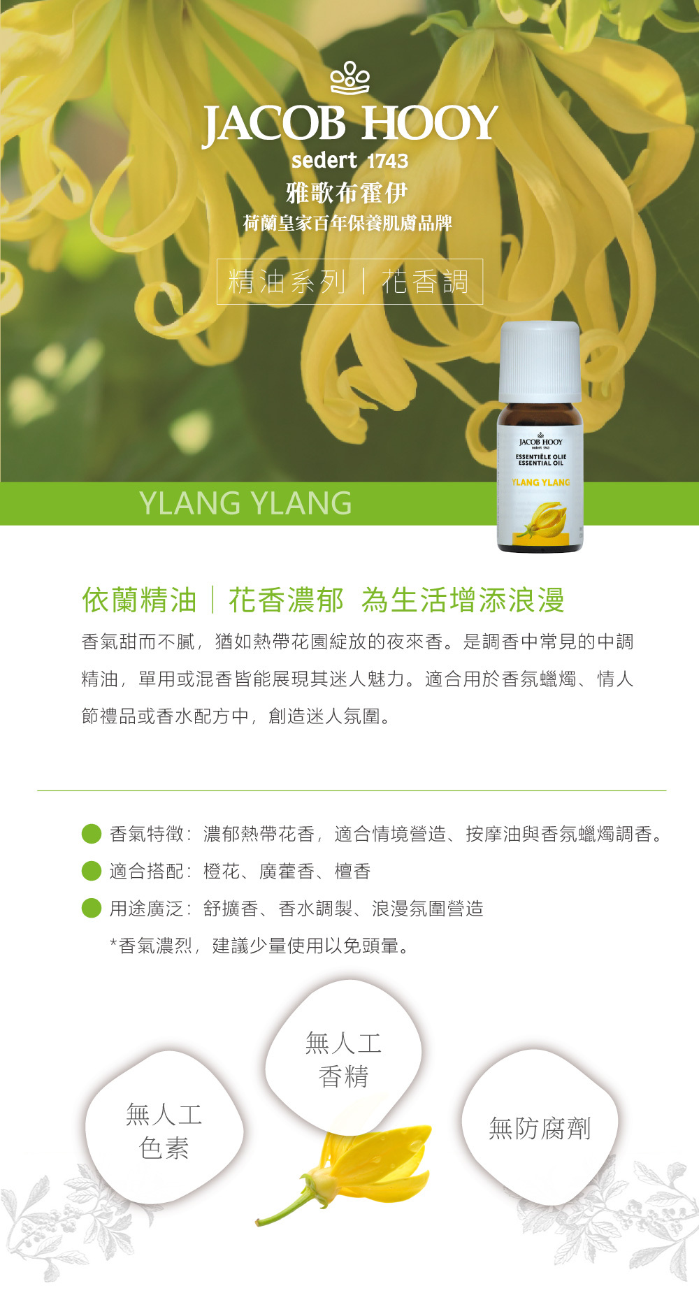 依蘭有著熱帶甜蜜的氣味,因此不少費洛蒙精油都會選用,可提升自信、吸引力。