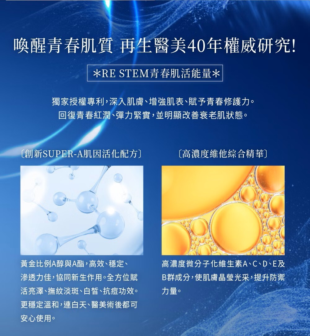 *專利維生素A活化複方-增強肌膚吸收與穩定性。