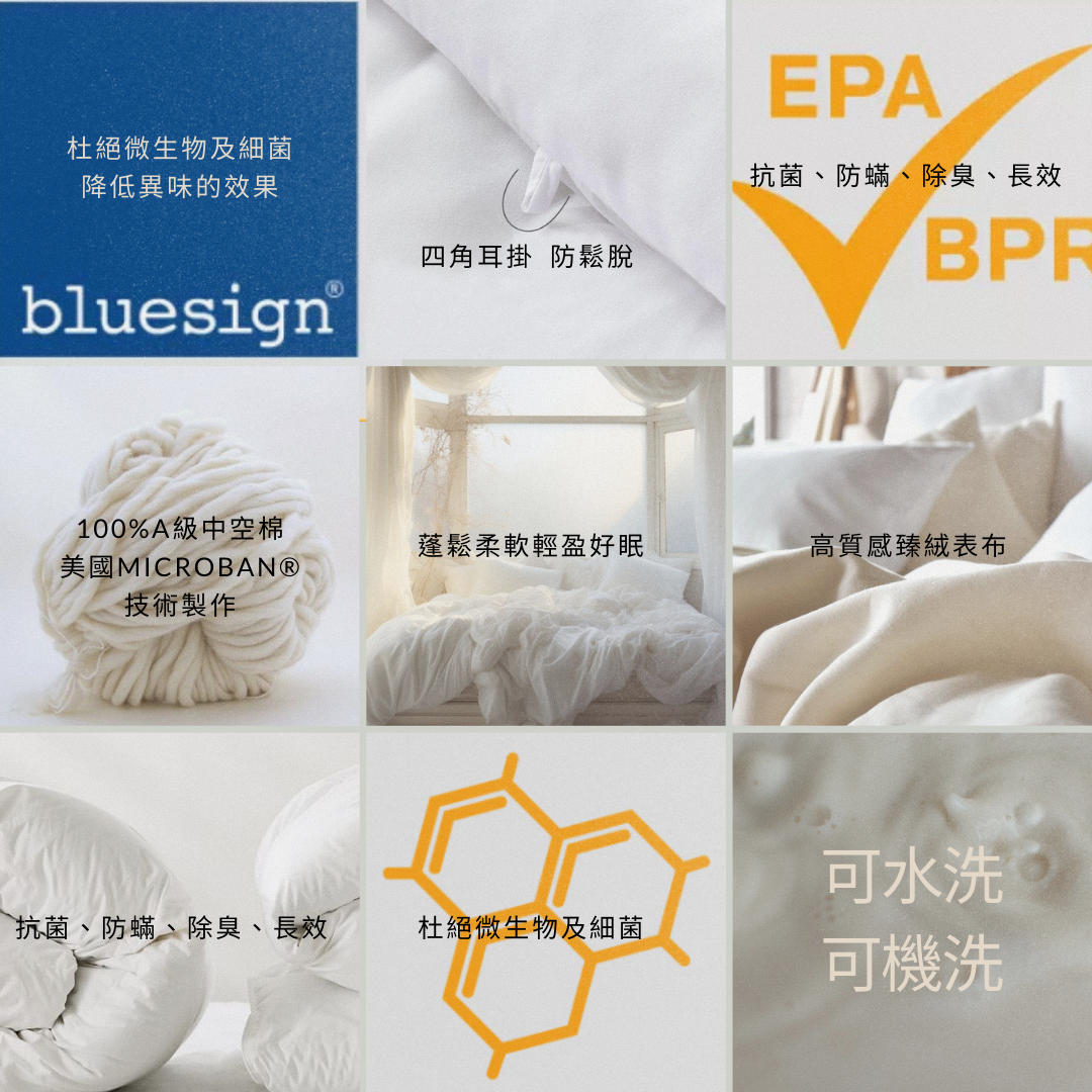內填充物:100%A級中空棉(美國Microban®技術製作)