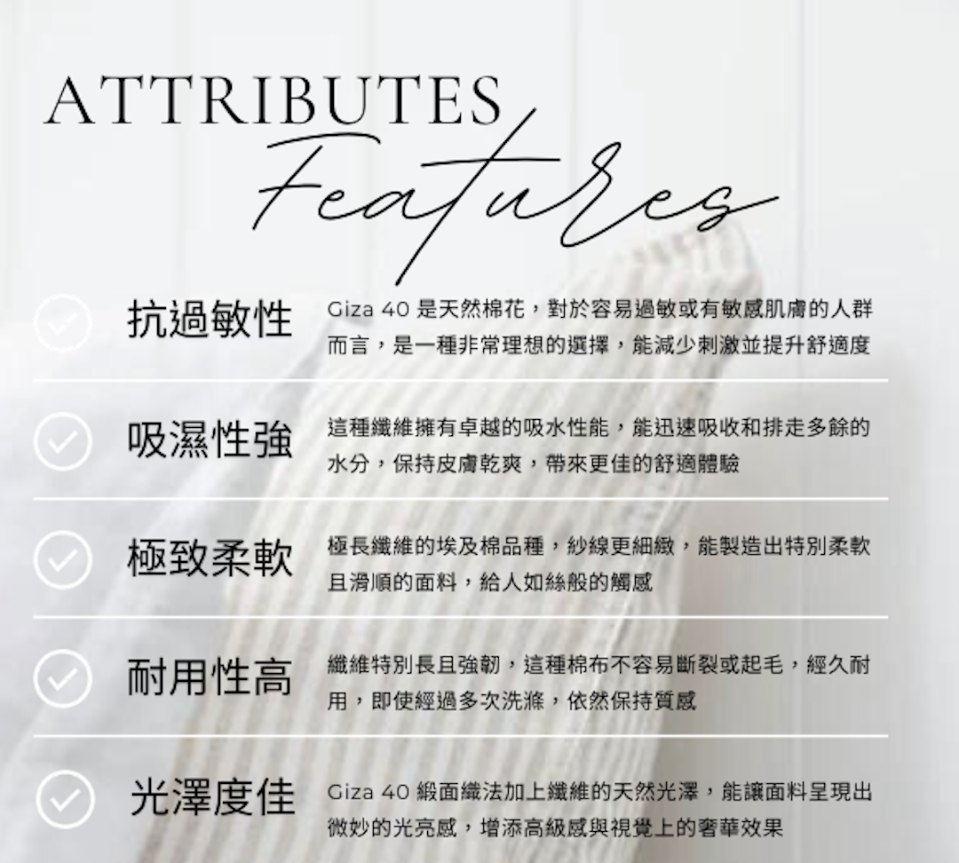 材質 / 500支織紗 金埃及精梳棉/100%純棉麻