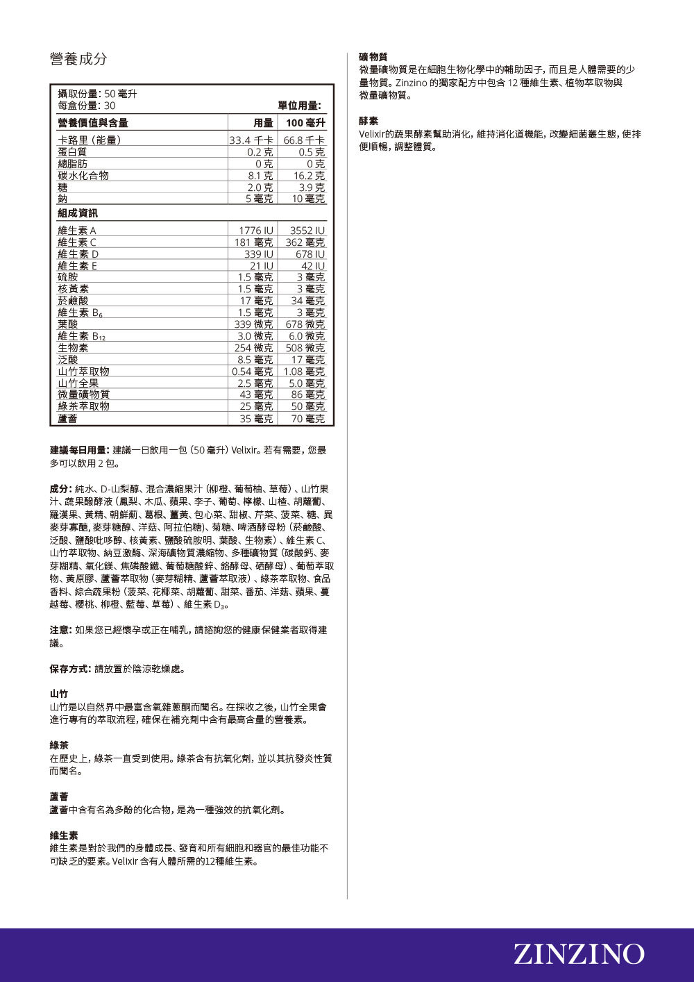 我們建議您在飲用 Velixir 之前,先諮詢您的健康保健專業人員。
