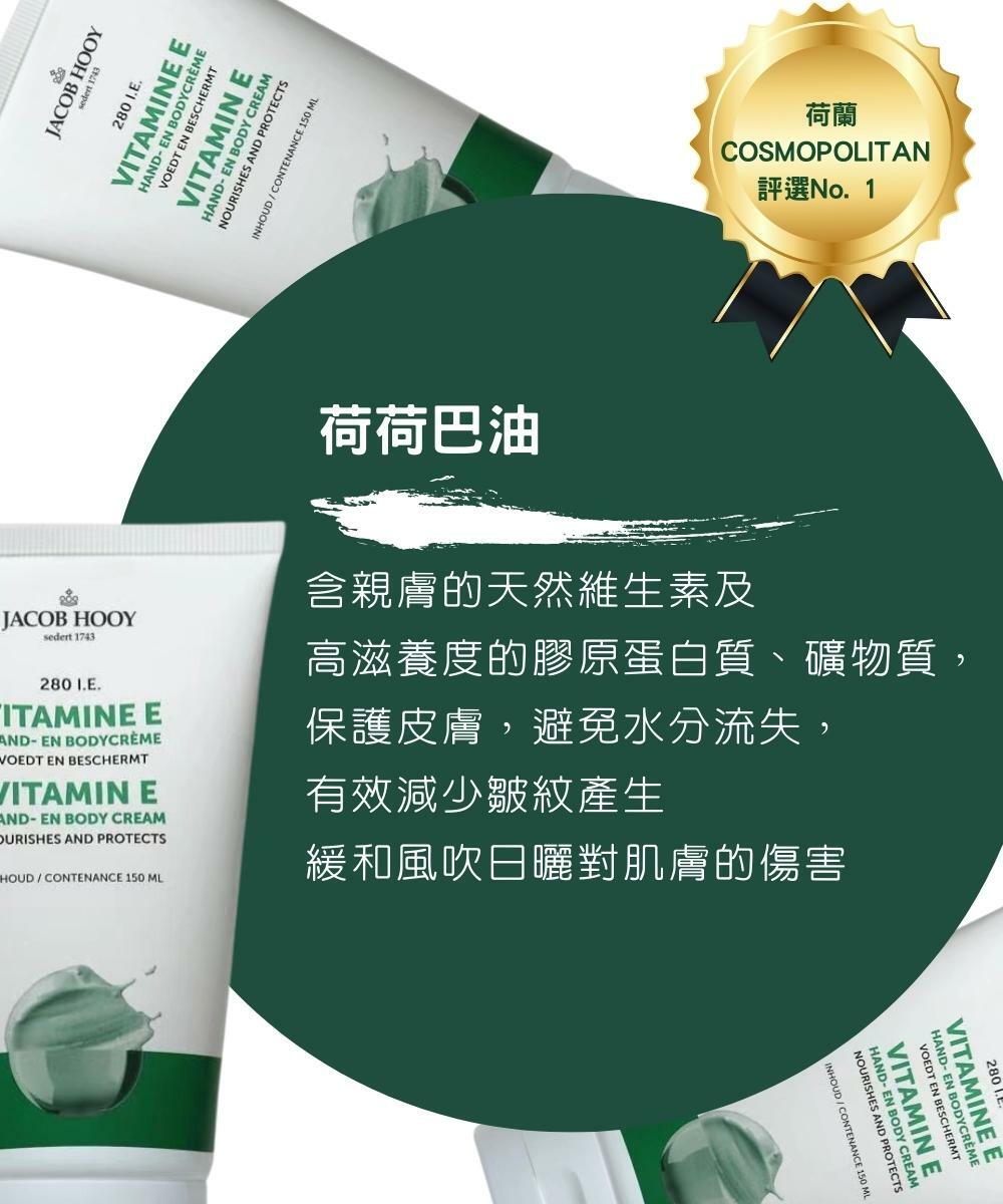 【claire專屬】Jacob Hooy 維他命E身體滋潤乳霜150ML - 🌟歐洲票選第一🌟