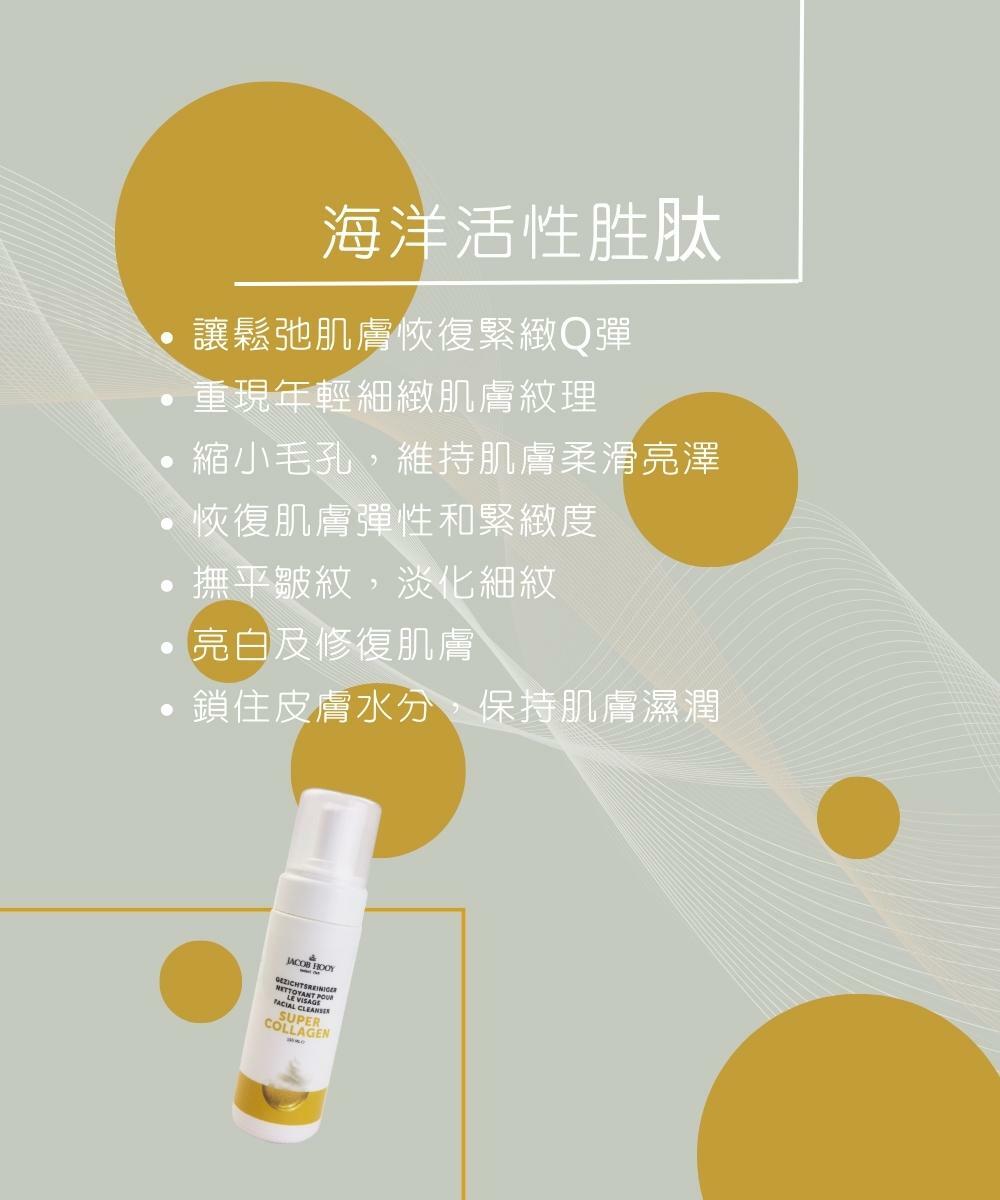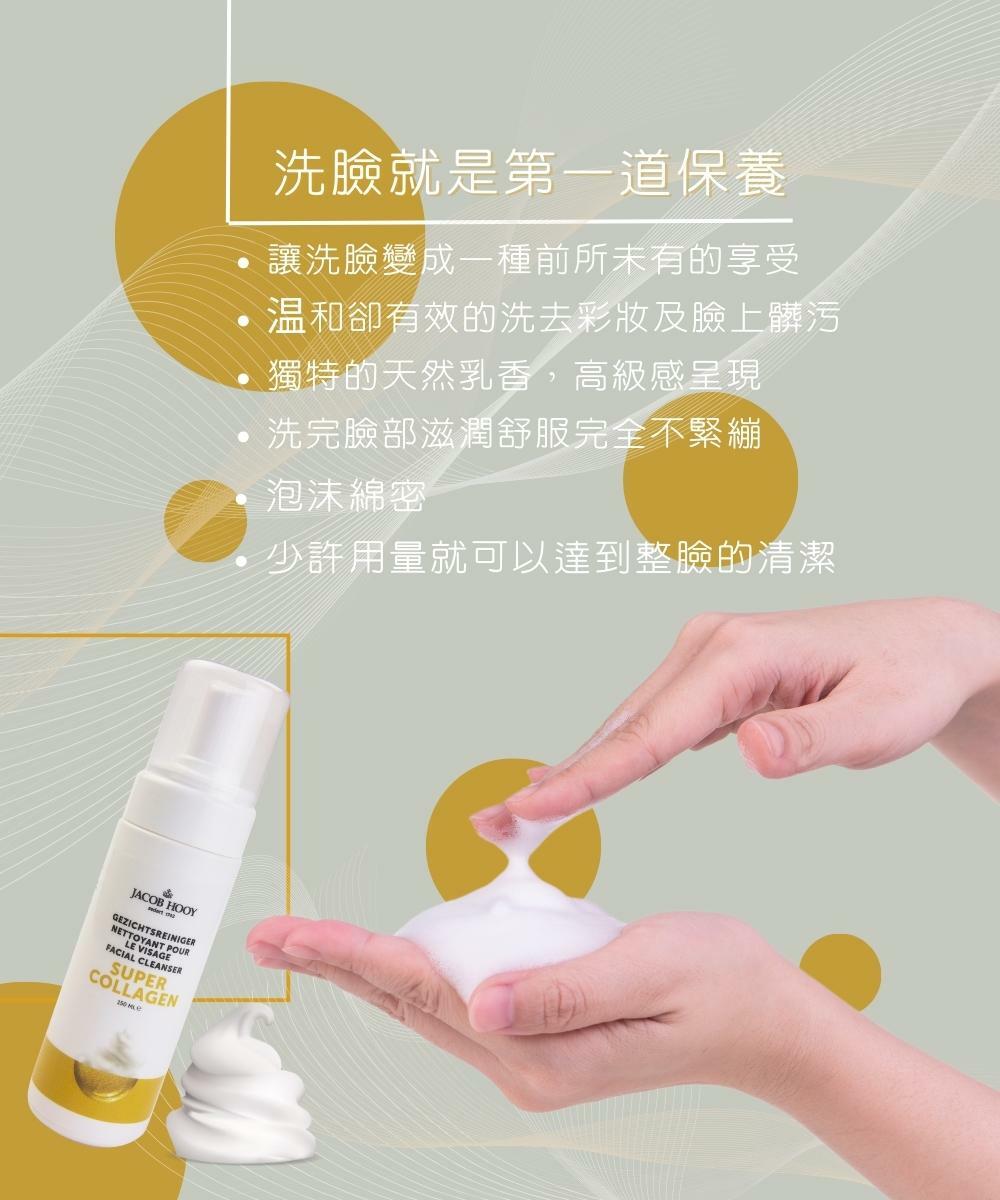 超級膠原蛋白洗面乳,綿密細緻的泡沫,讓洗臉變成一種前所未有的享受,能温和而有效的洗去彩妝及臉上髒污。